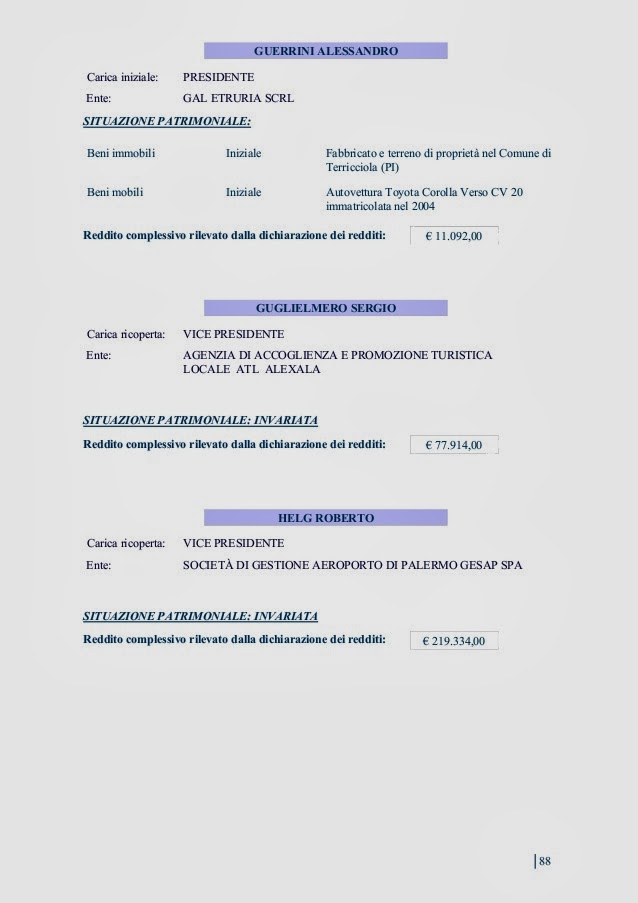 INCARICHI, POLTRONE OCCUPATE, NOMINE VARIE, PATRIMONIO IMMOBILIARE E