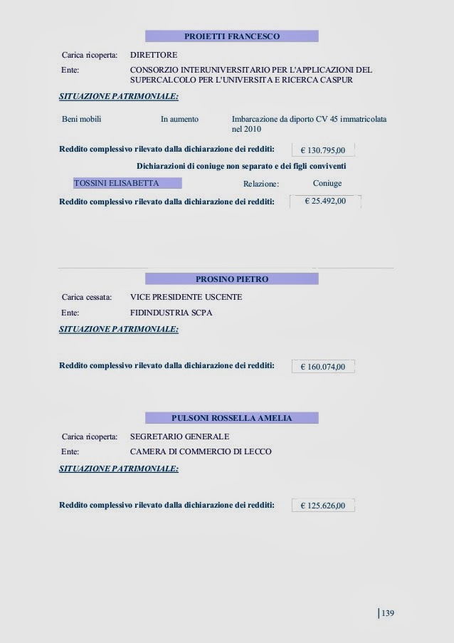 generali di comunicare (come avviene per i deputati) redditi e