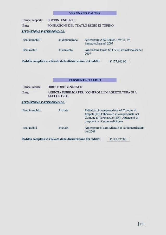 Dalla A di Abate (Pietro, segretario Camera di commercio di Roma) alla Z di Zoccali (Stefano Salvatore, direttore generale dell’ente per l’irrigazione della Puglia, Lucania e Irpinia) eccoli tutti i redditi e i patrimoni dei dirigenti dello Stato e della Pubblica amministrazione, degli enti pubblici, delle aziende autonome e speciali, nonché delle controllate dallo Stato