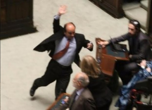 Riuscirà anche a chiedere a Scilipoti la riscrittura della Costituzione; lui, l’altro nano deforme, non avrà alcun problema. Come ha già fatto copiando il manifesto della sua scellerata formazione da quello fascista di Gentile, prenderà il Mein Kampf di Hitler e per i soliti quattro i cinque voti in fiducia Parlamentare blindata sarà approvata la "La Prostituzione della Repubblica Italiana".