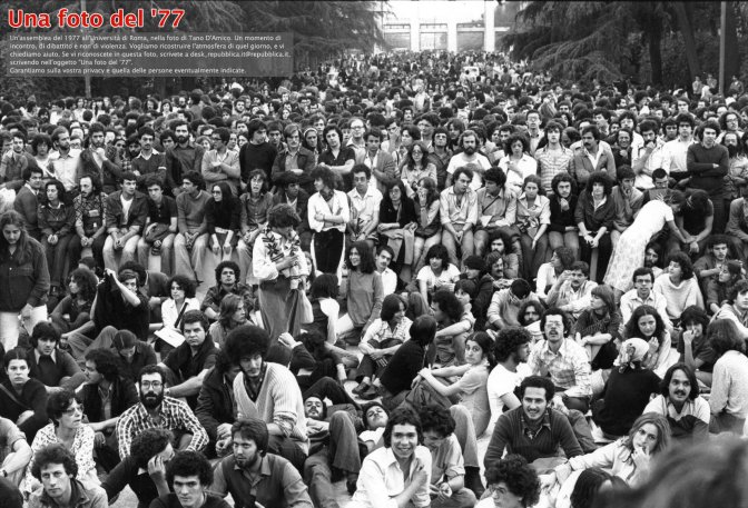 Il ’77 fu esplosione della contraddizione tra le aspettative di cambiamento maturate con l’avanzata elettorale del PCI e la realtà penosa che il sistema politico del compromesso storico metteva a disposizione sul piano economico, sociale, politico e culturale.