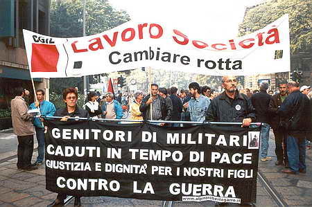 infatti ci vien da chiederci dove erano i “lor signori” e soprattutto dov’era tutta la loro commozione quando appena quattro mesi or sono, era il 22 settembre 2004, genitori di militari, poliziotti e carabinieri caduti in servizio a causa di incidenti “veri o presunti” a causa dell’uranio impoverito inalato in discutibili “missioni di pace” all’estero e/o nei poligoni di tiro sparsi per tutta la penisola, caduti a causa di nonnismo e/o di negligenza dei vertici militari, provenienti dal Veneto dalla Lombardia dalla Puglia dalla Sicilia e dalla Sardegna, presenti a Roma dinnanzi Palazzo Chigi sede del Governo furono lasciati inascoltati e ignorati da tutto il management governativo e lasciati li sul marciapiedi alla stregua di comuni venditori ambulanti e non come genitori di Patrioti caduti per la pace e la democrazia; così come si vuol far passare questi nostri soldati caduti in una guerra di cui il nostro paese ne ripudia il principio e ne chiede il ritiro immediato dei nostri soldati. E la memoria verso questi nostri caduti in servizio dov’è stata cacciata?