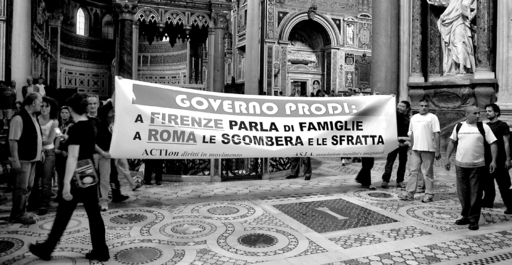 Ieri a Roma il movimenti per il diritto dell’abitare (Action, Asia, Rdb, Comitato di lotta per per la casa del centro storico) hanno occupato la basilica di San Giovanni contro gli sfratti e le politiche sulla famiglia.