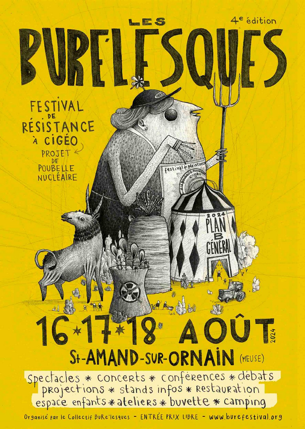 De nombreuses personnes et associations s’expriment et s’organisent au quotidien contre le projet destructeur de poubelle nucléaire, notamment via ce festival bisannuel "Les Bure’lesques" dont ce sera la 4e édition !