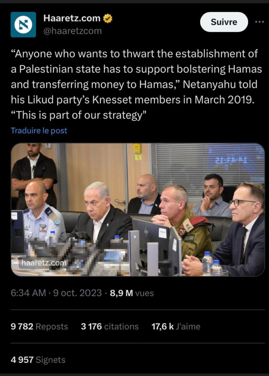 Netanyhaou en 2019 : « Ça fait parti de notre stratégie ». À lire entièrement, merci ✊