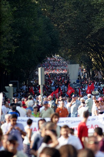 « Nous sommes venus ici en force, pour la lutte qui s’annonce ! »–un des mots d’ordre entendu durant les trois heures de la grande manifestation de la CGTP-IN [NdT : syndicat organiquement lié au PC Portugais], de la place du Duc de Saldanha jusqu’à la Place des restaurateurs, à Lisbonne – résume le message fondamental de cette journée de lutte.