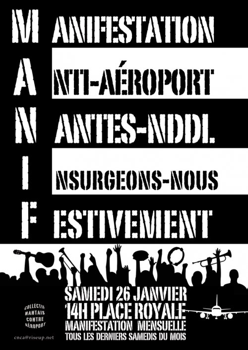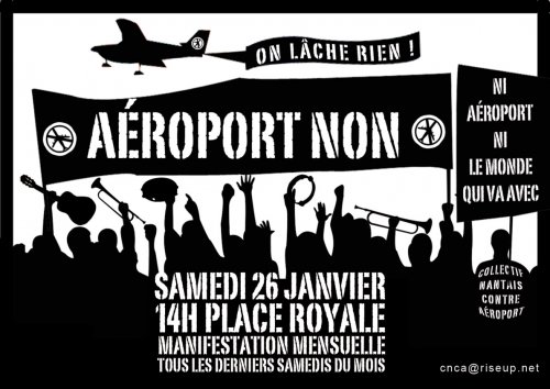 *Rendez-vous mensuel : samedi 26 janvier, 14h, place Royale Contre l’aéroport, la métropole et son monde.*