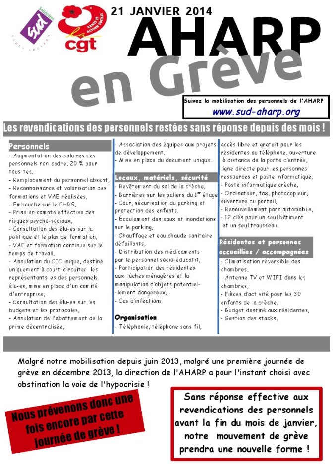 Pour toutes infos. complémentaires, visitez le site SUD des personnels mobilisés de l’AHARP, à l’adresse : http://sud-aharp.org