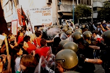Publie le lundi 1er septembre 2008 par Open-PublishingUne fois la lecture du jugement terminée, il y a eu une violente répression de la part de la gendarmerie qui avec des bâtons et des gaz lacrymogènes et vomitifs a dispersé ceux qui répudiaient la honteuse décision de ne pas ordonner la prison ordinaire pour les génocidaires Antonio Domingo Bussi et Luciano Benjamin Menendez. Les juges ont reporté la définition du lieu où ces deux génocidaires devront accomplir la condamnation de leur réclusion à perpétuité et les fondements de leur décision au 4 septembre.
