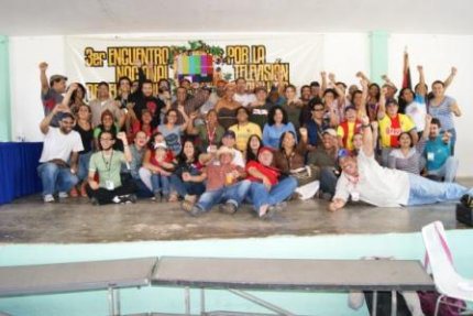 Rencontre de télévisions communautaires à Barlovento du 20 au 22 février 2013 pour discuter de la loi de communication populaire : Teletambores, TV Limón et Zamora TV (État d’Aragua), Selva TV (Amazonas), Calipso TV (Bolívar), TV San Joaquin et TV Mora (Carabobo), ALBA TV, TV Caricuao, Catia TV, TV San Agustin (Caracas), Coro TV (Falcon), Lara TV et Kabudare TV (Lara), TV Bailadores et Tatuy TV (Mérida), Afro TV, TV Petare, Guatopo TV et Telecimarron (Miranda), Montaña TV, Rubio TV, Jaureguina TV, Alternativa TV (Táchira), Tarmas TV (Vargas), Bolívar TV et Camunare Rojo (Yaracuy) et Canal Z et Quijote Tv (Zulia). Photo : Alba TV.