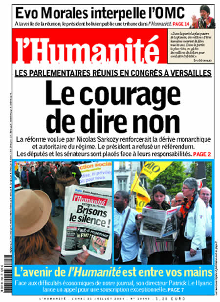 Nous avons lu l’appel de P. Le Hyaric dans l’Humanité publié hier , 21 juillet 2008 : "Une grande souscription pour l’Humanité", page 7.