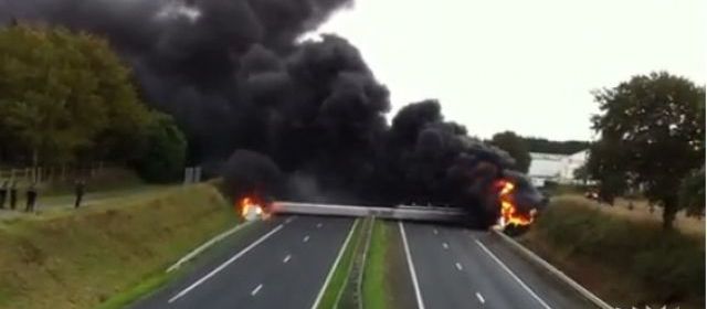 Gendarmes et CRS ont coupé la circulation sur la quatre voies et dévié le trafic. Mais les forces de l’ordre ont peiné à atteindre le portique détruit. Ils ont été pris sous un tir de barrage de divers projectiles auquel ils ont répliqué par des jets de gaz lacrymogène.