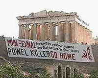 Les opposants à la visite à Athènes de Colin Powell à l’occasion des Jeux olympiques