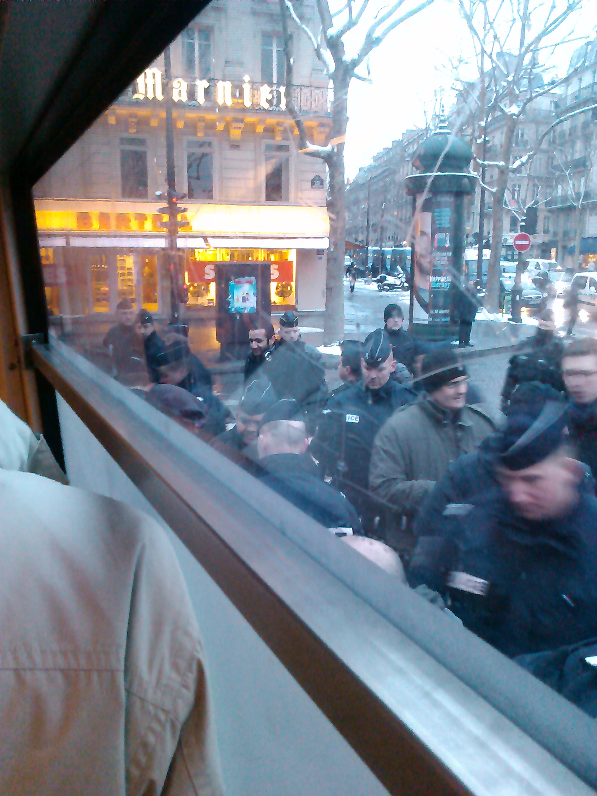 Ce Samedi 19 Janvier 2013, à l’Appel du Secours Rouge Arabe, du Collectif Georges Ibrahim Abdallah, du Comité Anti-impérialiste et de l’AGEN un rassemblement de soutien à Georges Abdallah était organisé à Paris. Plus de 130 manifestants ont répondu à l’appel. Dès notre arrivée un important effectif de policiers et de gendarmes était présent. Devant l’impossibilité de se rassembler devant le siège du ministère de l’intérieur, nous avons investit la place saint-augustin.