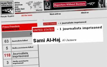 Dans un article du 11 mars 2005 dans le Northern California Media Guild, la journaliste états-unienne Diana Barahona s’en offusque : « Mais un exemple révélateur sur la manière dont RSF modère ses critiques contre les Etats-Unis est l’exemple de l’enlèvement du cameraman d’Al-Jazeera Sami Al Haj. Al Haj a disparu en décembre 2001, lors d’un reportage en Afghanistan, pour se retrouver dans le camp de concentration de Guantanamo, où il est toujours enfermé. Non seulement Al-Haj a physiquement disparu, mais a aussi disparu toute référence à lui sur le site Internet de RSF, où il n’est mentionné qu’une seule fois depuis un communiqué sur Al-jazeera du 27 janvier. Par contraste, RSF lance régulièrement de grandes campagnes pour les journalistes européens enlevés par la résistance Irakienne. »