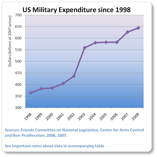 Publie le mercredi 16 avril 2008 par Open-PublishingCourbe des dépenses d’armement des USA de 1998 à 2003 (ça ne s’est pas arrangé depuis, au contraire) :
