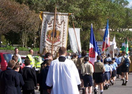 J’ai regardé passer, toute à l’heure, vers 15 heures, une procession immense de catholiques (je pense deux ou trois milliers tranquille...) venus de France, de Suisse, de Belgique...Scouts, drapeaux français frappés du sacré coeur, portraits de Padre Pio, fidèles de l’Opus Dei, curetons en soutenanes et aubes de dentelles, familles BCBG avec leurs 5 ou 6 enfants, messe en latin et prêche public semé à tout vents par d’énormes hauts parleurs, et j’en passe.