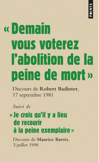 Texte intégral du discours de Robert Badinter, Garde des sceaux, à l’Assemblée Nationale en septembre 1981 lors du vote de l’abolition de la peine de mort suivi part un discours de Maurice Barrès datant de 1908 qui, lui, demande son maintien et son application par "amour de la santé sociale".