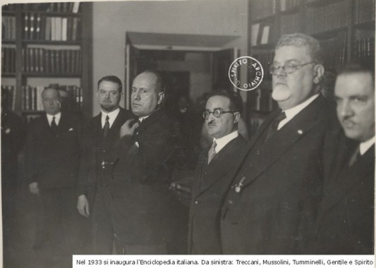 Giovanni Gentile, d’un point de vue historique, qui ne peut être ignoré tant sa pensée est conforme à ses actions, est une dignitaire fasciste : Ministre de l’Instruction publique, nommé par Mussolini, de 1922 à 1924 ; rédacteur du Manifeste des intellectuels fascistes en 1925 ; de 1928 à 1941 il assume d’importantes charges universitaires et académiques ; en 1938, il est le premier signataire du Manifeste de la Race (ouvertement antisémite) ; le 24 juin 1943, dans une phase critique de la seconde guerre mondiale, il tient au Campidoglio le tristement célèbre Discours aux Italiens, qui exhorte la nation à rester unie sous la conduite du Duce et qui mènera à la fondation de la République de Salò ; de 1943 à sa mort en 1944 il suit Mussolini à Salò (République Sociale Italienne).