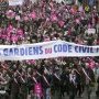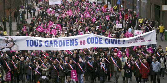 J’avais pas fait attention à la banderole représentée sur la photo : "tous gardiens du code civil". Du code civil, oui donc, pas du code religieux. Il y en a encore qui n’ont pas saisi la loi de 1905 : "séparation de l’Etat et de la religion" signifie également que le religieux ne s’impose pas à tout le monde via l’Etat ... La religion (et les comportements sociaux qui vont avec) est un choix privé ... Ca va être dur car les religions ont la dent dure.