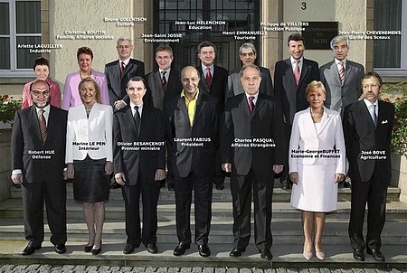Anecdotiquement, ce qu’il y a de curieux dans ce phot montage, c’est que Fabius est le seul personnage à ne pas porter de cravate ? Quelle pourrait être le ressort inconscient qui a présidé à un tel choix ? D’autant que Besançenot et Bové, qui ne portent jamais de cravate (du moins en public, dans leur intimité je ne sais pas, y sont ici "encravatés".