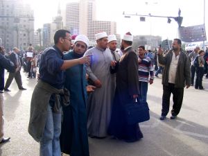 Une autre diversification de cette journée fut l’apparition de plusieurs cheikhs d’al-Azhar, l’Université islamique de du Caire, qui est aussi celle de tout le monde musulman. Le fait est d’autant plus remarquable que la direction de cette institution est liée au régime en général et au PND en particulier. C’est le gouvernement qui nomme son recteur, comme ce fut le cas l’an dernier lorsqu’après le décès de Tantawi, Ahmed al-Tayyeb a pris ce poste.