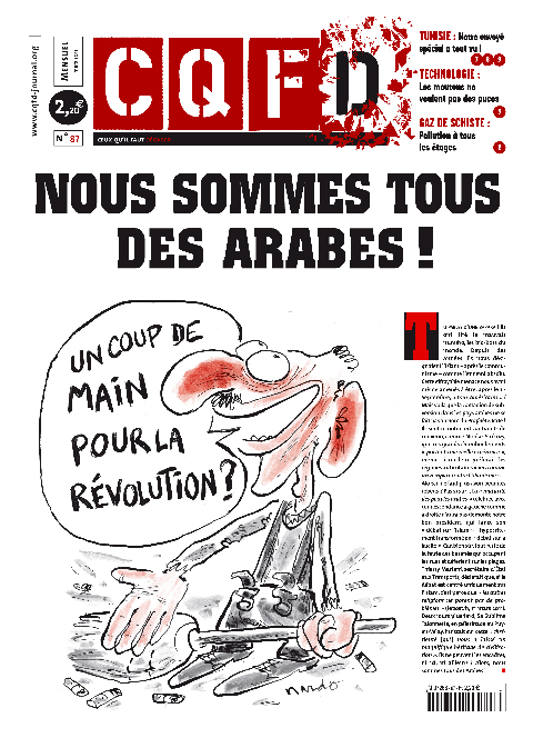 « Dégagitude et tunisification » > Dossier. CQFD s’est saigné aux quatre veines pour envoyer un de ses glorieux plumitifs respirer l’air révolutionnaire en Tunisie, alors lisez ! Car ce n’est pas tous les jours qu’on vous décrira un peuple en train d’expérimenter la liberté, de faire le tri dans ses gouvernants, d’inventer son destin politique, de balayer des années de servitude, de dire son mépris des exploiteurs – n’en jetez plus –, dans les rues, sur les places, dans les entreprises, les usines, les mines… Ce n’est pas gagné, la tâche est pour le moins complexe, ça dérape parfois, ça foisonne aussi, beaucoup.