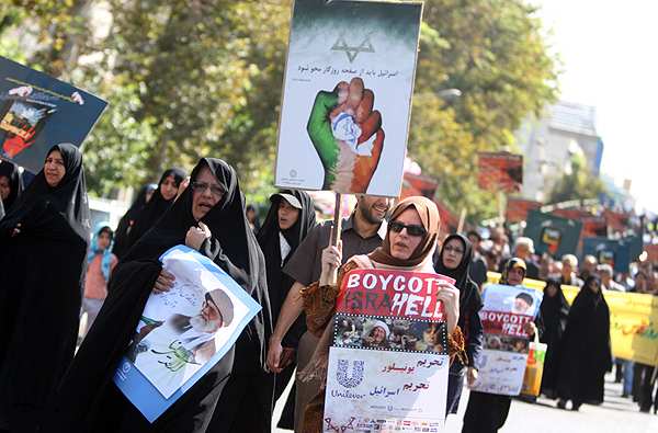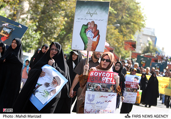 Comme au cours de ces dernières années, ces rassemblements pro-palestiniens ont été organises de manière glorieuse à travers tout le pays, exprimant la volonté de la nation iranienne de défendre les idéaux de Palestine et protestant contre le silence de la communauté internationale et les partisans de ce qu’on appelle des droits de l’Homme contre les crimes commis dans les territoires occupés.