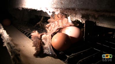 L’association de protection animale L214 démontre, images à l’appui, la violation flagrante de la loi dans un élevage situé en Bretagne. Les cages contiennent généralement 5, parfois 6 voire 7 poules là où la loi en autorise seulement 3 ! De plus, les images montrent des cadavres en décomposition empêchant momentanément le convoyage des oeufs vers le centre de tri.