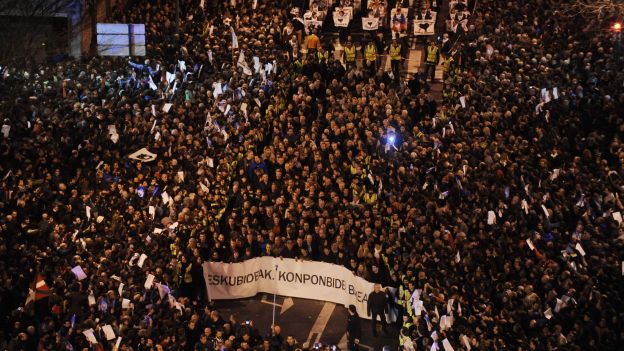 1. Espagne : des milliers de manifestants défient Madrid au Pays Basque, 12 janvier 2014, 01:56, par Roberto Ferrario