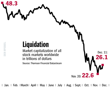 [3] L’évolution des valeurs boursières mondiales est un bon indicateur de cette disparition des « actifs-fantômes », même si il faut lui ajouter toutes les pertes de valeur dans l’immobilier et dans d’autres gammes d’actifs ; et probablement lui retrancher des reprises de valeurs qui ont été emportées par la tourmente actuelle et se rétabliront une fois le pire de la crise derrière nous.