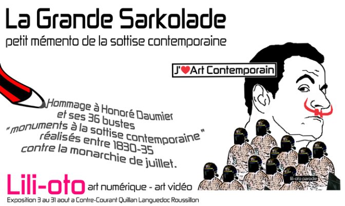 Exposition de l’artiste Lili-oto : la grande Sarkolade ou petit mémento de la sottise contemporaine. languedoc Roussillon