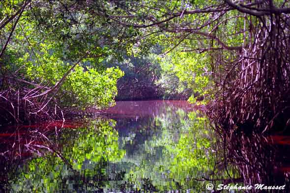 2- Les mangroves sont des forêts à feuilles persistantes et tolérantes au sel, qui se situent le long des littoraux, des lagunes, des fleuves ou des deltas ; dans la plupart des cas, l’espèce dominante est le palétuvier. Ce sont des zones très riches en biodiversité notamment en poissons, mollusques et crustacés. Elles sont d’excellentes barrières protectrices contre l’érosion des côtes et contre la salinisation des nappes phréatiques.