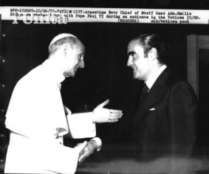 Photo à droite : L’amiral Emilio Massera, architecte de la “Guerre Sale” reçoit le Pape Paul VI au Vatican)