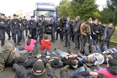 2. Gad. Heurts entre CRS et salariés devant l’abattoir de Josselin, 24 octobre 2013, 12:18