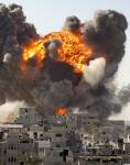 Explosion photographiée le matin du 14 janvier 2009 au centre de Gaza.