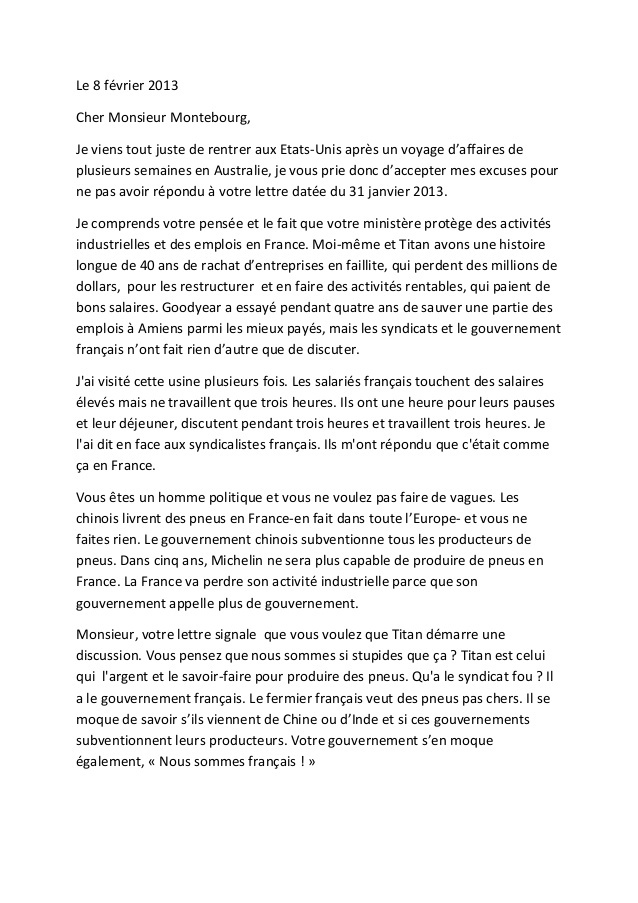 3. Goodyear : l’incroyable courrier du PDG de Titan à Montebourg, 20 février 2013, 17:39, par suzanne