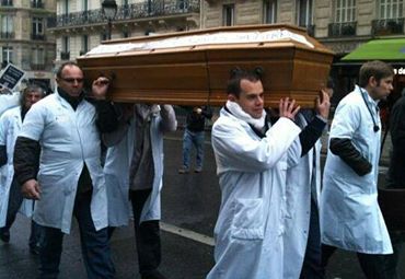 Les opposants à La fermeture du comité de résistance de L’hôpital Hôtel Dieu et de ses urgences ont mimé le premier novembre , jour de la Toussaint, les funérailles d’un patient mort de n’avoir pas été pris en charge à temps par des services saturés. Selon l’urgentiste Gérald Kierziek ’’plus on attend aux urgences, plus on meurt » !