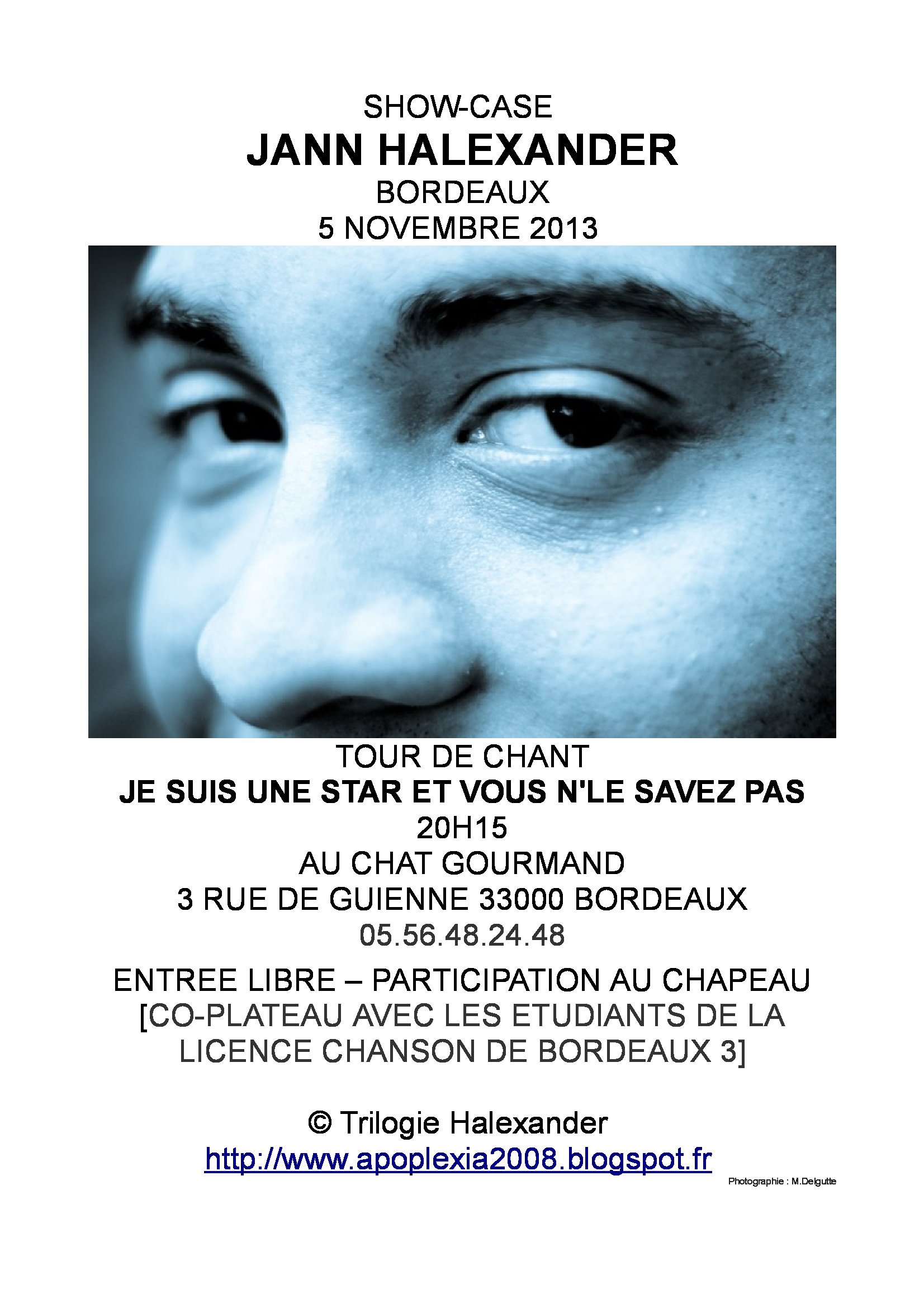 Info Chanson/SHOW-CASE JANN HALEXANDER BORDEAUX 5 NOVEMBRE 2013