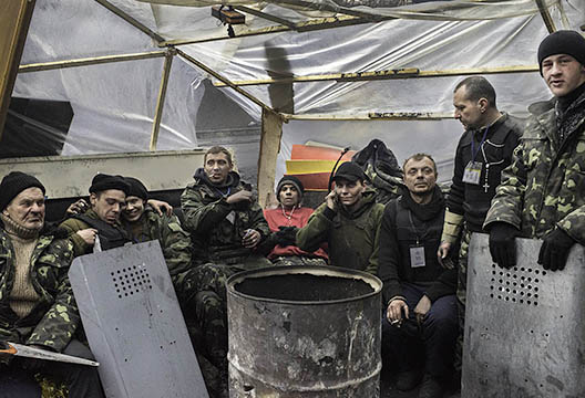 M : Ces nationalistes sont là non pas pour défendre leurs droits mais pour défendre la nation, et c’est pratique pour les leaders d’encourager ça, parce que pendant que les gens se concentrent sur des questions nationalistes, ils peuvent faire ce qu’ils veulent. Il y a surtout des ouvriers et des pauvres à EuroMaidan, et il faut détourner leur attention des problèmes réels. Beaucoup de gens veulent manipuler les gens ici..."