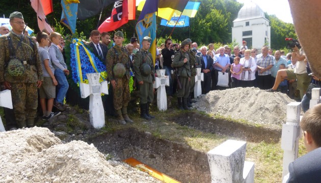 Il est prévu d’ensevelir, avec tous les honneurs, deux dépouilles de soldats de la division retrouvés récemment sur les lieux de la bataille. Cela se fait en grande pompe, sous l’égide des plus hautes autorités religieuses uniates, en présence d’une foule bigarrée.