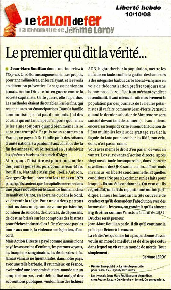 3. Jean-Marc Rouillan : "le premier qui dit la vérité"..., 17 octobre 2008, 22:06, par kounet