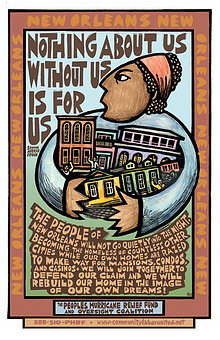 Un an après, les organisations sont sur le pied de guerre car rien n’est revenu comme avant. La reconstruction prend de plus en plus l’aspect d’une gigantesque opération qui unit la spéculation immobilière et financière au « nettoyage ethnique » et aux profits des entreprises liées à la Maison Blanche. Opération semblable à la reconstruction en Irak.