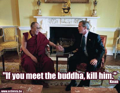 Qui sait, peut-être pour le Dalaï-Lama "tuer le Bouddha" signifie déjà commencer à prendre conscience de l’utilisation perverse et manipulatoire du bouddhisme par les classes possédantes pour écraser le peuple tibétain. Si c’est le cas, Ceux qui le suivent et ne veulent voir qu’une partie de la réalité et ceux qui restent figés dans leur sectarisme et leurs limitations mentales ne sont pas au bout de leur surprise.