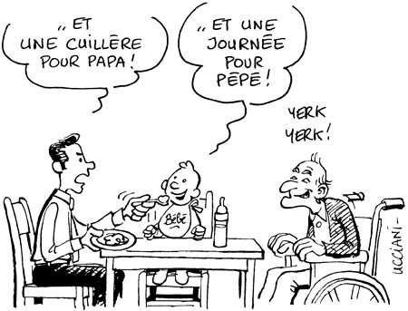 Si on additionne tout ce gaspillage, payé par les caisses de l’Etat, cad, nous, il y a moyen de résoudre beaucoup de problèmes, et de tenir sa parole que ce "jour de solidarité" doit servir aux personnes âgées et à rien d’autre. Sinon, boycottons cette journée, refusons de la faire !
