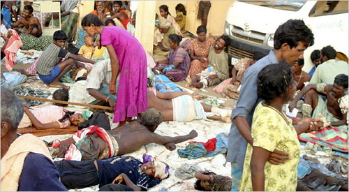 Pire, le gouvernement Sri Lankais accuse les LTTE d’avoir eux même bombardés leur propre civils. Un mensonge horrible, quelle serait l’intérêt des LTTE de tuer leur propre peuple après les avoirs protégé durant plus de 30 ans du génocide du gouvernement ?? Ces propos sont honteux.