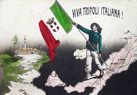 Le 8 novembre, Monseigneur Valeri, archevêque de Brindisi et Ostumi, expliquait dans sa pastorale : « L’Italie ne demandait qu’un peu d’espace pour ses enfants, en telle augmentation qu’ils formaient une grande Nation de plus de 45 millions d’habitants, et elle le demandait à un peuple cinq fois moins nombreux que le notre et qui détient, on ne sait pas pourquoi et de quel droit, une extension de territoire quatre fois plus grand que l’Italie sans qu’il sache exploiter les trésors dont l’a enrichi la Providence à l’avantage de l’homme. Pendant de nombreuses années, on patienta, en supportant agressions et abus, et quand, n’en pouvant plus, nous eûmes recours au droit des armes, nous fûmes jugés agresseurs ». Dans le sillon de cette tradition, don Vincenzo Caiazzo -qui a sa paroisse sur le porte-avions Garibaldi, où il célèbre la messe dans le hangar des chasseurs qui bombardent la Libye- assure que « l’Italie est en train de protéger les droits humains et des peuples, c’est pour cela que nous sommes en mer » (Oggi, 29 juin 2011). « Les valeurs militaires -explique-t-il- vont bras dessus bras dessous avec les valeurs chrétiennes ». Pauvre Christ.
