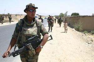 La France compte environ 1 300 soldats au sein de la FIAS, y compris quelque 280 militaires chargés d’entraîner membres des Forces armées et des contingents spéciaux de l’Afghanistan (une priorité pour la France) et 540 militaires déployés au sein du Commandement régional de la capitale de la FIAS à Kaboul. En 2007, la France a transféré à Kandahar quatre chasseurs-bombardiers Mirage basés jusque-là au Tadjikistan. Ces appareils sont affectés à des missions de renseignement et de soutien aérien rapproché [13], y compris l’appui aux forces terrestres canadiennes. Environ 400 militaires français sont déployés dans le cadre de l’OEF en Afghanistan et dans la région. Le nombre de militaires français tués en Afghanistan s’élève à 12.