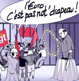 – une machine anti-sociale par nature, qui crache des directives s’imposant aux lois des états membres, permettant aux gouvernements et patrons de se réfugier derrière d’imparables « c’est pas moi, c’est l’Europe » ;