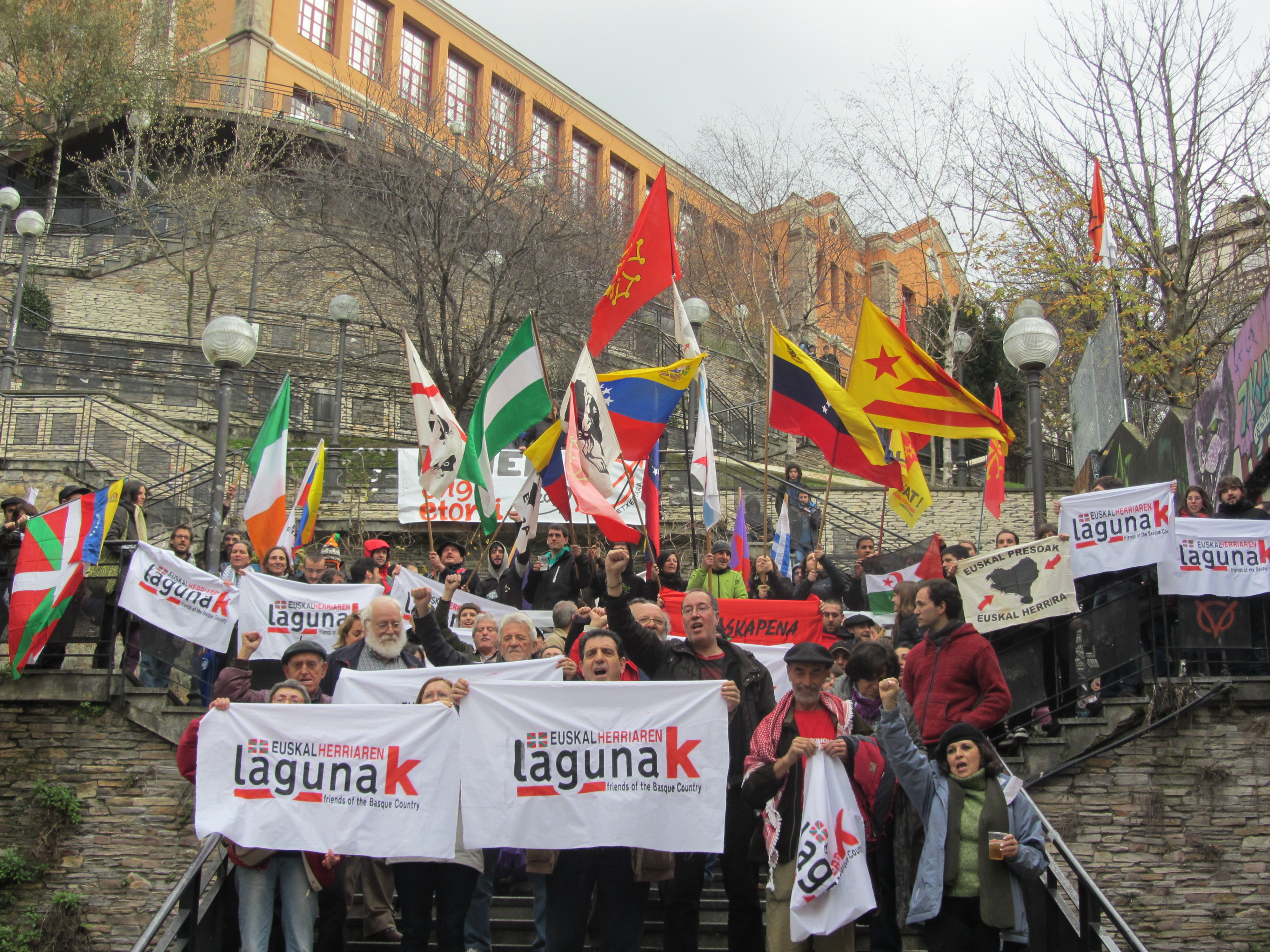Délégations Internacionalistes/lagunak(amics), dans le vieux Bilbao avant de rejoindre le cortège.